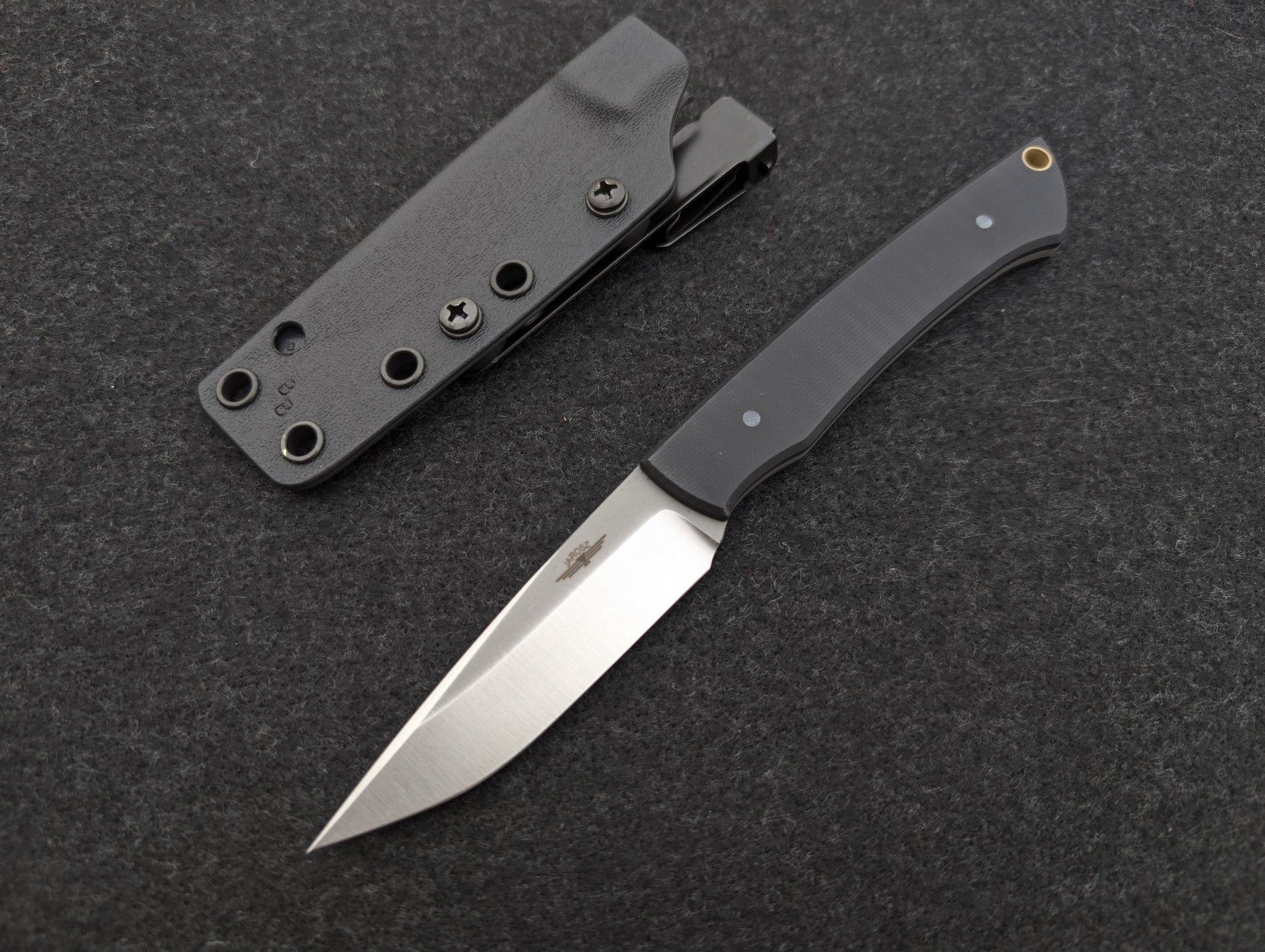 AEB-L Blade Steel 62-63 HRC .100″ Blade Stock Thickness 3.5″ Blade, 8″ Overall Hollow Ground with Two-Tone Finish Blasted G10 Scales Kydex Sheath w/ Ulti-Clip Included